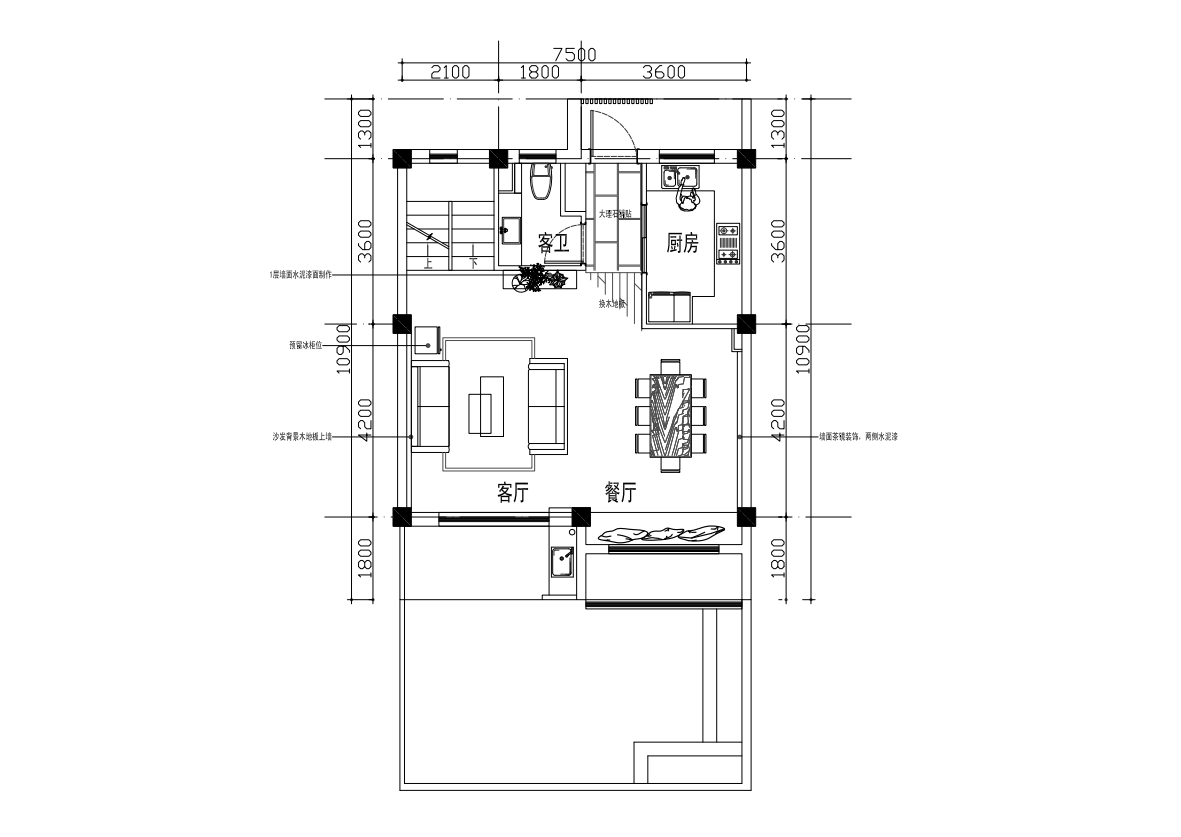 结合中岛台柱设计简易酒水吧台,浅灰色水泥漆以及灰色大理石纹地砖营造出一种高冷、桀骜的空间质感,简洁之余更具艺术姿态。